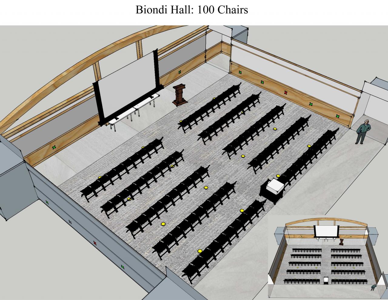 Using SketchUp Pro and a handy laser tape measure, I build to-scale models of relevant rooms on campus here at Cold Spring Harbor Laboratory for the purpose of event planning. All models are accurate to within a couple inches, as well as their contents.