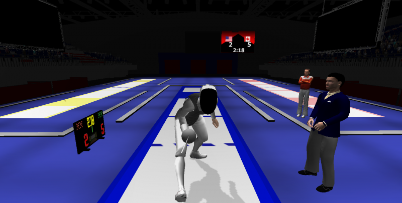The fencing project mentioned here is intended to provide a simulation of an olympic level competitive fencing environment for use in training/treatment of athletes themselves.